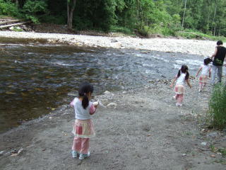 澄んだ水で川遊びも出来ます。さらさら流れる場所や急流もあり小さい子供から大きな子供も楽しめるようです。