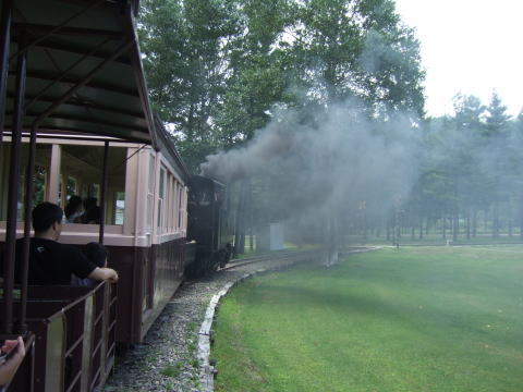 園内を走るSLです。大人500円で約15分間蒸気機関車に乗ることが出来ます。(夏休み期間と土日運行)