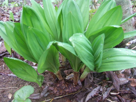 4月下旬から5月上旬にかけて、ミズナラ等、広葉樹の落ち葉が堆積した、腐葉土の多いところに群生しています。ギョウジャニンニクは成長が遅いので、2枚葉になり、茎が太くなるまで、4〜5年かかると言われていますから、同じ場所で採らずに、毎年、採取する場所を変えましょう。